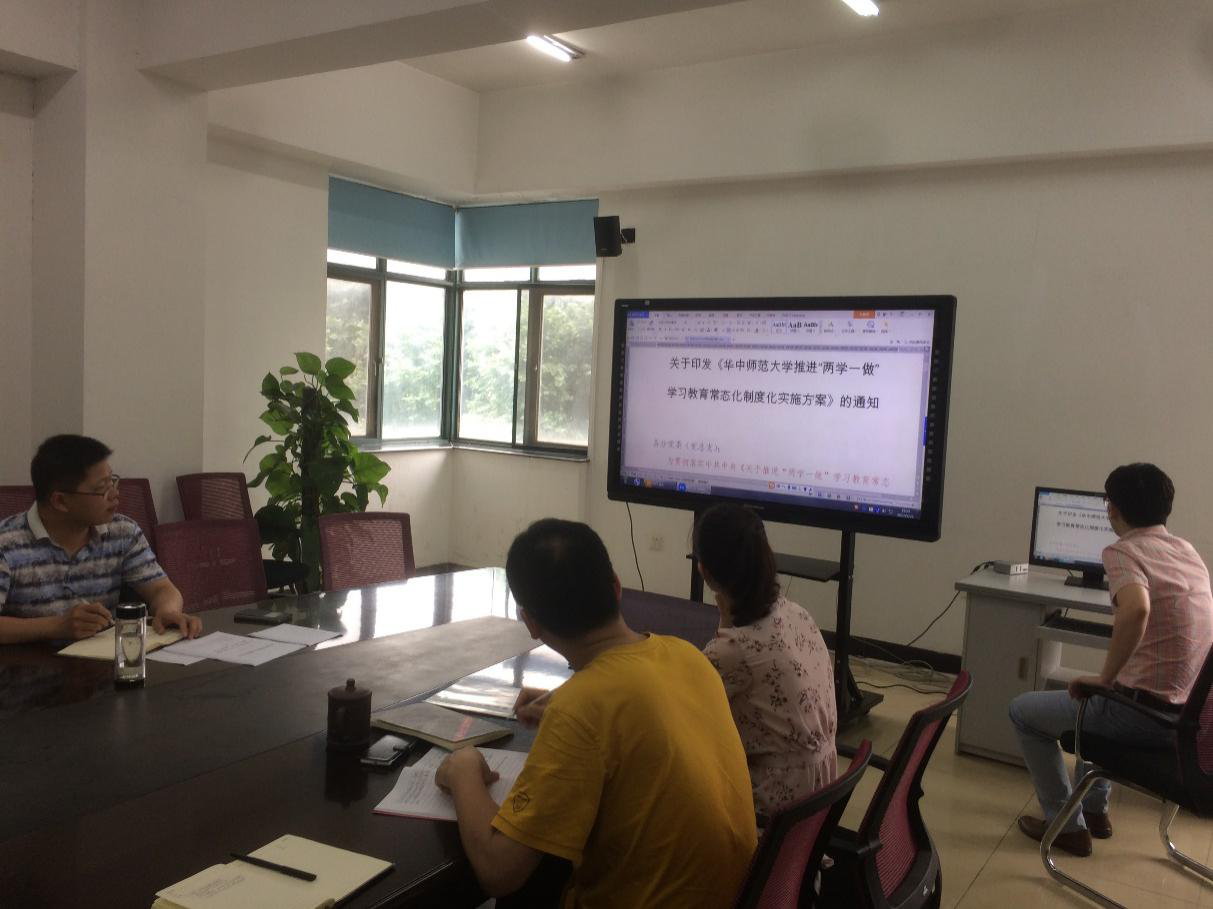 其次,由支部宣传委员胡尉尉同志带领支部全体成员学习了《华中师范大学推进“两学一做”学习教育常态化制度化实施方案》的相关精神,从准确把握目标要求、精心安排学习内容、着力查找解决问题、组织领导等方面进行了具体阐述。