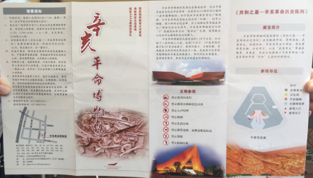 该展厅分为晚清中国、革命原起、武昌首义、创建共和、辛亥百年五个部分,展示了辛亥革命历史文物、历史照片以及重大历史事件复原场景,还包括一些艺术品、多媒体等20多处,从多角度、深层次地还原了辛亥革命这一历史变革和中国“共和”之基的开创伟业,给我们留下了深刻的印象。图为辛亥革命博物馆展厅宣传手册及博物馆内部分展图。