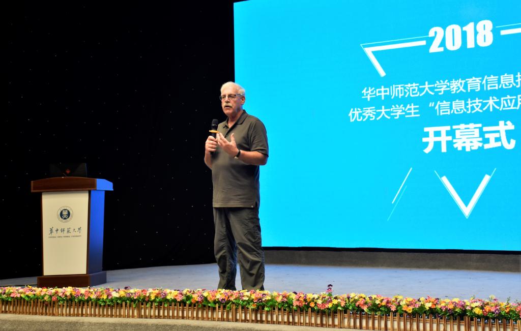教育信息技术学院讯(记者 杨晨曦)6月30日下午3时,教育信息技术学院举办的2018年“信息技术应用”国际交流创意课堂暨暑期夏令营开班活动于九号楼演播厅正式开始。我院党委书记游丽出席,我院教育技术系主任张屹教授主持本次活动。参加本次活动的嘉宾有来自美国的专家:俄亥俄州立大学的谢魁教授以及他的两位博士生卢琳和江子鹭、David S.Stein 教授、Michael Joel Glassman 教授,来自美国佐治亚大学Ikseon Choi 教授以及他的博士生钱盈笑,和来自卡佩拉大学的Hilda R Glazer 教授。
