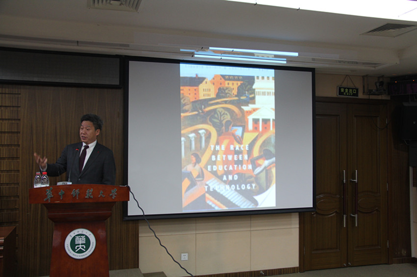 教育信息技术学院讯(通讯员 赵蓉)我校第三期“教育科学大讲堂”于3月20日上午在我校逸夫国际会议中心举办。本期大讲堂由教育大科学研究中心主办,教育信息技术学院承办。美国堪萨斯大学教育学院与商学院杰出教授赵勇进行了主题为“第四次工业革命与教育范式转变”的专题报告。我院院长杨浩与副院长左明章共同主持了此次报告会,我院党委书记游丽、常务副院长刘清堂、副院长杨九民、心理学院院长胡祥恩以及本院及其他学院师生参加了此次报告会。