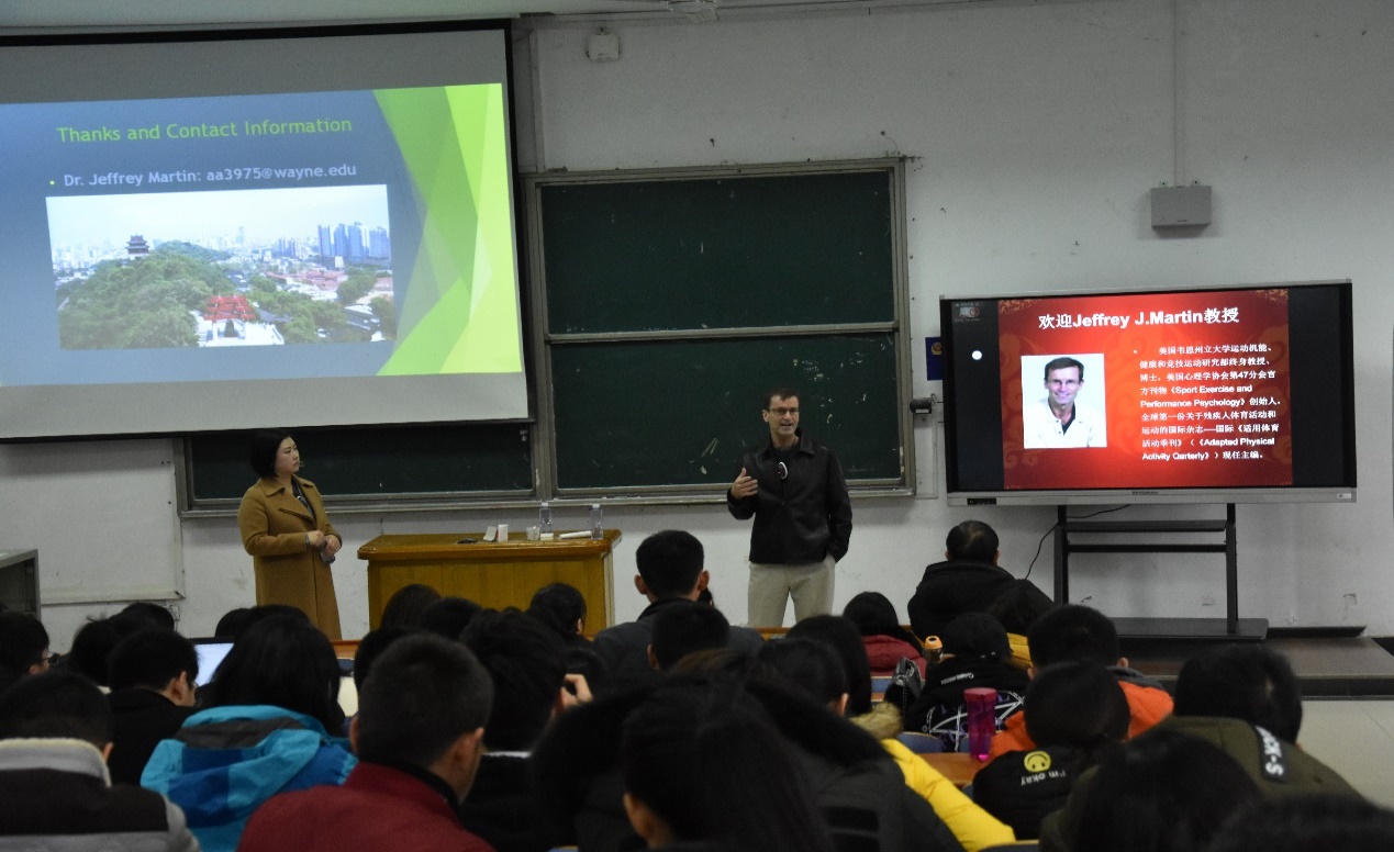 (通讯员:郑晰文)2017年12月2日上午8:30,美国韦恩州立大学运动技能、健康和竞技运动研究部终生教授、博士Jeffrey J. Martin教授在南湖T101教室作了一场题为“残疾人奥运会和运动心理学”的讲座。本次讲座由信技学院、体育学院研究生会承办、心理学院和计算机学院研究生会协办。