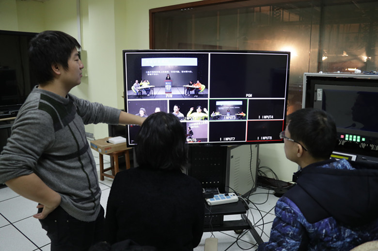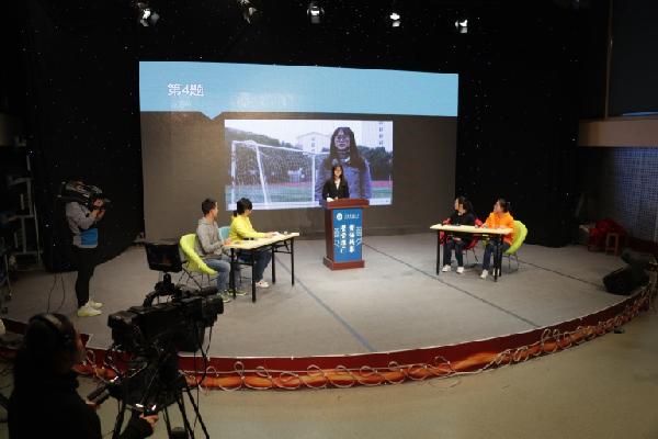 在现场录制的过程中,无论是台上的演员和选手,还是台下的摄像、导播、导演……每个人都全身心地投入到节目的录制中,为自己的节目贡献智慧、付出汗水。在节目的策划和制作中,欧阳宏杰老师对两个小组的节目脚本、节目形式进行了指导和点评,在彩排的过程中引导同学们发现自身的优点和不足,并在最终的节目录制中给予同学们指点和帮助。