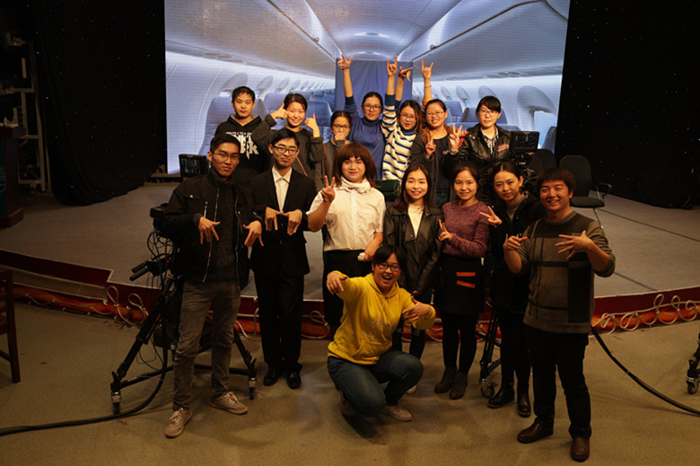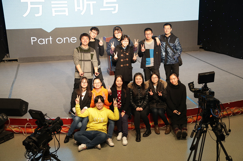 经过两个小时的不懈努力,两组同学的节目均成功录制完毕,大家合影留念。