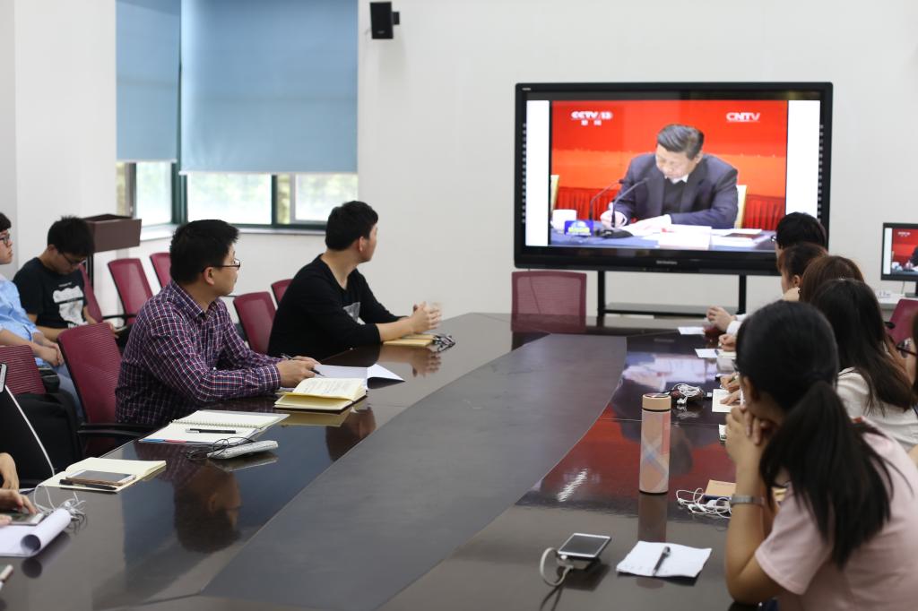 学习伊始,胡尉尉组织大家集中观看了习近平总书记5月2日考察北京大学时同师生座谈并发表重要讲话的新闻视频。在视频内容学习后,在场学生就学习贯彻讲话精神积极分享学习感想。刘祎首先发表了自己的想法,她认为青年人要脚踏实地,为国家建设出一份力。王培鑫认为要将自己的个人目标同中国梦紧密结合起来。胡尉尉强调团学干部需具有应有的政治素养,要及时去关注最新动态、学习重要讲话和文件精神,勉励学生要立鸿鹄之志,肩负起时代的历史担当。