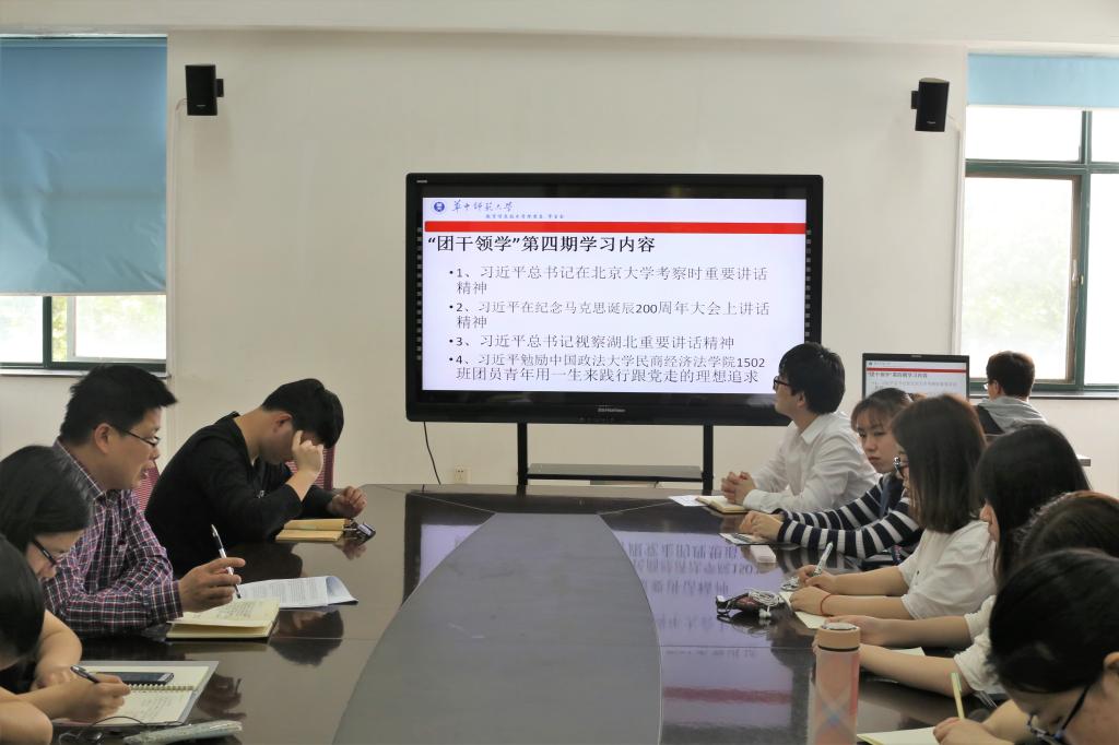 教育信息技术学院讯(记者 杨晨曦)为深入贯彻学习习近平新时代中国特色社会主义思想,加强基层团干思想政治建设,推进全院青年思想引领工作,教育信息技术学院于5月7日中午12:10在九号楼9635教室举办了以“青春建新功,团干共学‘习’”为主题的第四期“团干领学”活动,重点学习习近平总书记近期重要讲话精神。院党委副书记钟文锐出席学习活动,院团委书记胡尉尉、院团委学生会干部及各团支部书记参加本次集体学习。