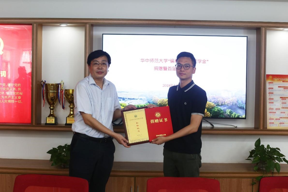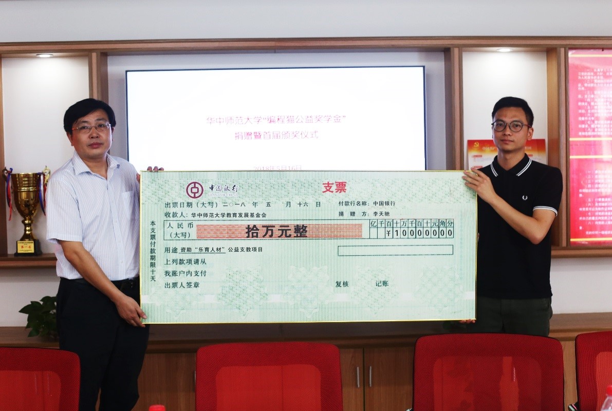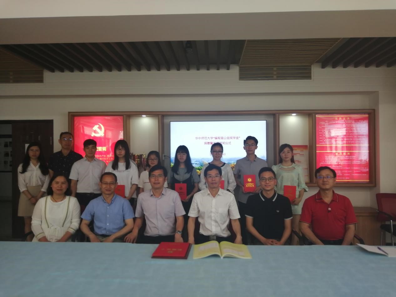 教育信息技术学院讯 5月16日上午10时,华中师范大学“编程猫公益奖学金”捐赠暨首届颁奖仪式在九号楼9511室举行。深圳点猫科技有限公司联合创始人李天驰,校学工部部长刘宏达,校团委副书记麻旎,物理科学与技术学院党委书记陈迪明、党委副书记吴建成,教育信息技术学院副院长杨九民、党委副书记钟文锐以及相关企业代表、“乐育人材”公益项目志愿者代表等参加了此次活动。校党委副书记、纪委书记陈厚丰在物理学院调研间隙也亲切慰问了志愿者代表并与其合影。