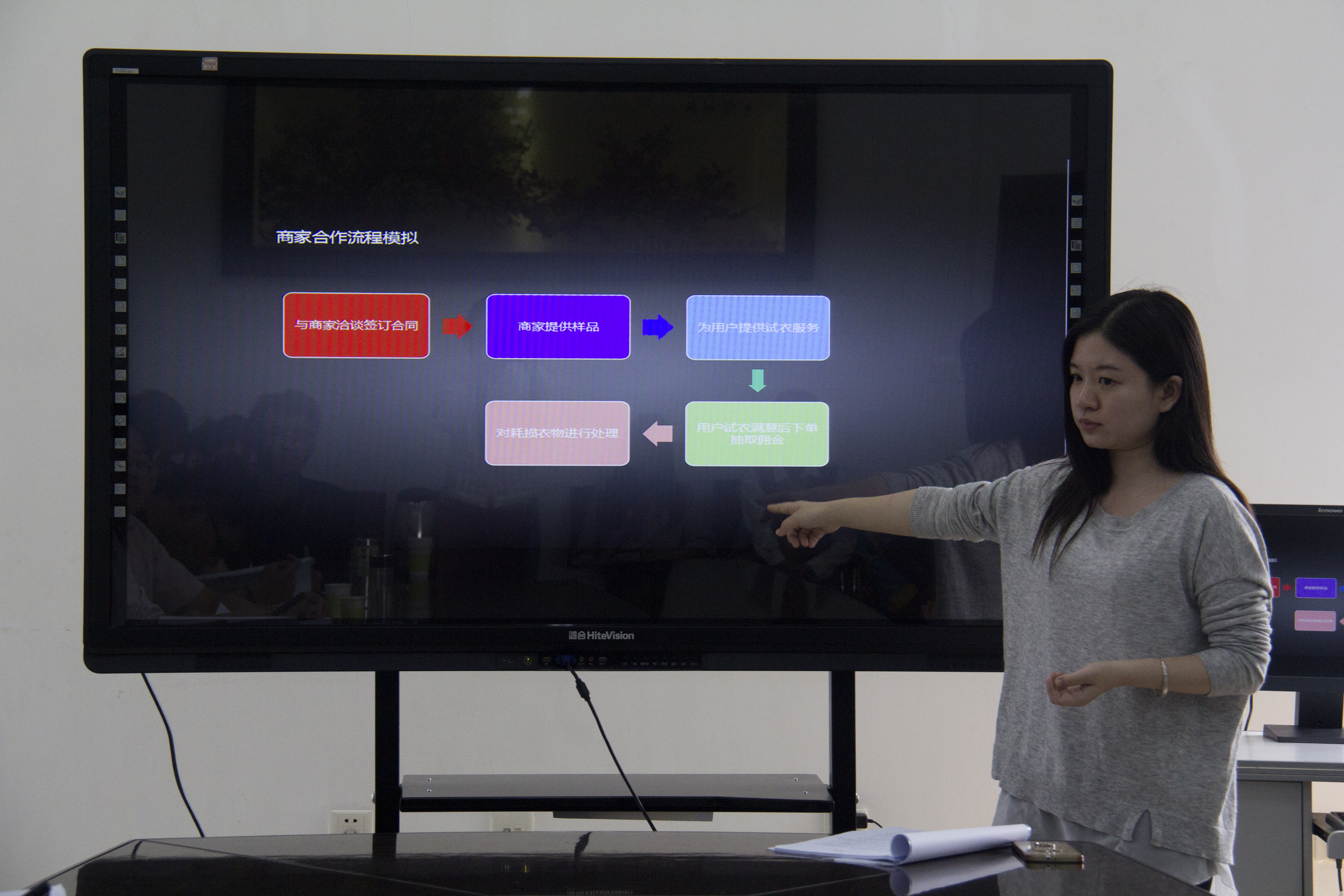 第一个出场的汪双向各位评委老师介绍了自己团队的项目“自习吧”APP设计与开发,她首先提到自己团队的该项目理念是针对当前大学生对自习室的需求量高以及供不应求的情况而提出的,同时她也介绍了团队成员所做的前期工作、实施情况以及未来设想,在答辩结束后,评委老师又对其项目进行了有针对性的提问并提出合理建议。第四位出场的是“心仪”购共享试衣间服务平台的项目负责人陈梦圆,她提到,他们团队的想法来源于“双十一”期间淘宝、天猫等电商平台的服饰退货率高的问题,在走访了不少淘宝商家后,他们决定推出“共享试衣间服务平台”的项目实践。同时,她也提到他们团队将把电商和支付平台作为主要的合作伙伴,并从中抽取部分佣金作为盈利。针对该项目,评委老师在表示了较大的兴趣之后,仍对其不合理之处提出改进意见。在12组参赛项目之中,还有一组选手的项目吸引了在场的评委及观众的目光,就是“康复性体能训练项目”。该组的创意以当代都市人的腰椎颈椎病频发为切入点,对此团队成员走访了相关专业理疗人员,并与他们达成了合作关系,而目前该项目也正在操作实行中。