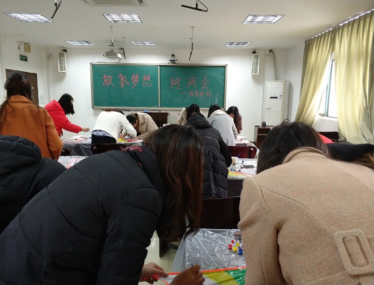 2018年3月18日,在两会召开期间,为让同学们了解两会,鼓励同学们勇于追求梦想,我院研究生团总支在9638教室举办了以“放飞梦想 迎两会”为主题的风筝设计活动。此次活动由团总支副书记徐苏晓主持,团总支组织委员张倩,1702班团支部委员以及各参赛小组参加了此会。