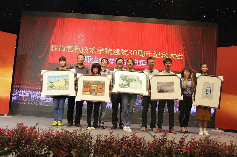 (教育信息技术学院讯 通讯员 李安然 编辑 胡尉尉)10月17日晚7点,教育信息技术学院30周年院庆纪念大会暨师生优秀作品拍卖会在九号楼六楼演播厅如火如荼举行。华南师范大学李克东教授,华中师范大学副校长王恩科教授,华中师范大学党委常委、组织部部长骆军、教育信息技术学院全体党政领导班子成员,众多学科同仁、历届院友以及师生代表出席了本次活动。活动分为两个阶段:第一个阶段为30周年院庆纪念大会,由学院党委书记游丽主持;第二个阶段为师生优秀作品拍卖活动,由学院优秀教师赵肖雄主持。拍卖会上所拍卖的作品均由数字媒体技术专业的老师和学生精心创作,拍卖筹得的钱款将全部纳入学院教育发展基金,整场纪念大会更是高潮迭起、掌声不断。